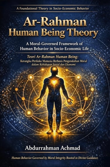 Ar-Rahman Human Being Theory merupakan sebuah kerangka teoretis yang menempatkan akhlakul karimah sebagai pusat pengendalian perilaku manusia dalam kehidupan sosial dan ekonomi. Buku ini mengintegrasikan secara sistematis tiga elemen utama, yaitu moralitas sebagai pengendali, kapasitas manusia sebagai instrumen tindakan, serta lingkungan sebagai ruang peluang yang dihadapi manusia.